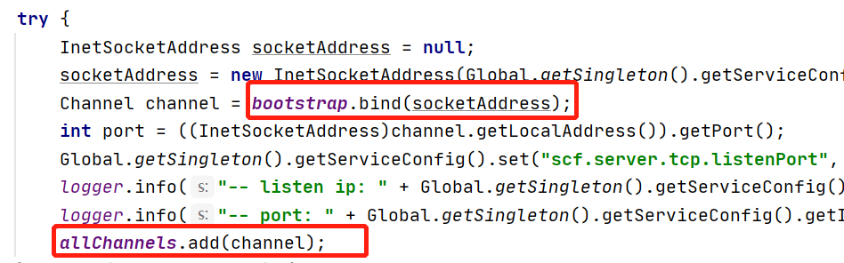 InetSocketAddress + ServerBootstrap = channel 的方式.